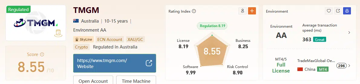 TMGM Bis 2026 positioniert sich das Unternehmen als exzellenter Broker. Mit einem WikiFX-Wertung von 8,55/10, A Tier-1 ASIC-Regulierung, und eine Rangliste Die Top 6 der Welt, Er flößt Vertrauen ein.